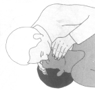 Den vom Helfer fernen Arm über die Brust legen, dabei den Handrücken des Bewusstlosen gegen seine, dem Helfer nahen, Backe legen und dort mit einer Hand fest halten ![]() |